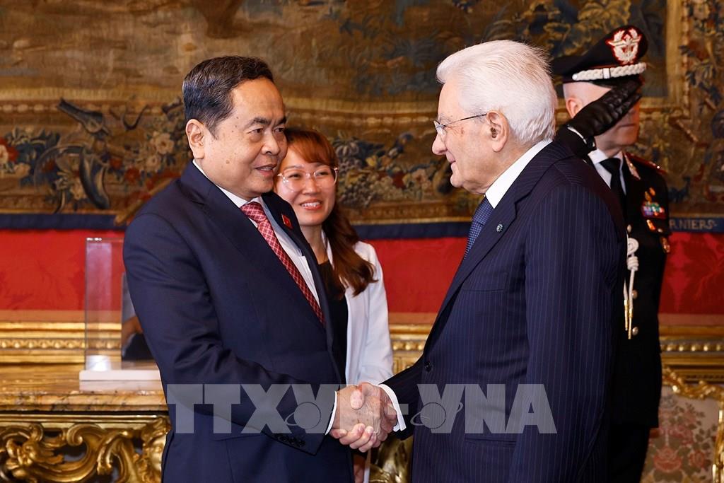 Chủ tịch Quốc hội Trần Thanh Mẫn hội kiến Tổng thống Italy Sergio Mattarella. Ảnh: Doãn Tấn – TTXVN