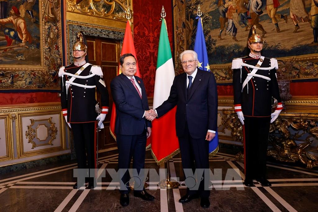 Nhiệt liệt chào đón Đoàn đại biểu cấp cao Việt Nam, Tổng thống Sergio Mattarella đánh giá cao ý nghĩa chuyến thăm, nhấn mạnh đây là chuyến công tác của lãnh đạo chủ chốt đầu tiên của Việt Nam tới Italy sau cuộc bầu cử đại biểu Quốc hội khóa XVI và kiện toàn bộ máy Nhà nước. Qua Chủ tịch Quốc hội Trần Thanh Mẫn, Tổng thống đã gửi lời chúc mừng tới Tổng Bí thư, Chủ tịch nước Tô Lâm.