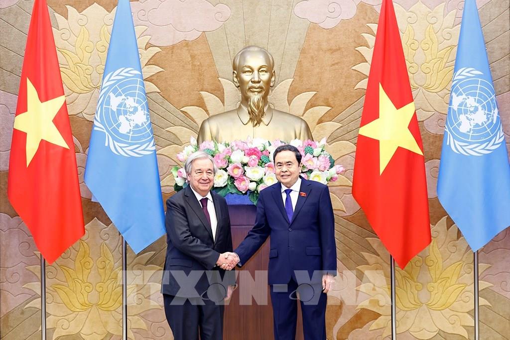Chủ tịch Quốc hội Trần Thanh Mẫn và Tổng Thư ký Liên hợp quốc António Guterres. Ảnh: Doãn Tấn - TTXVN