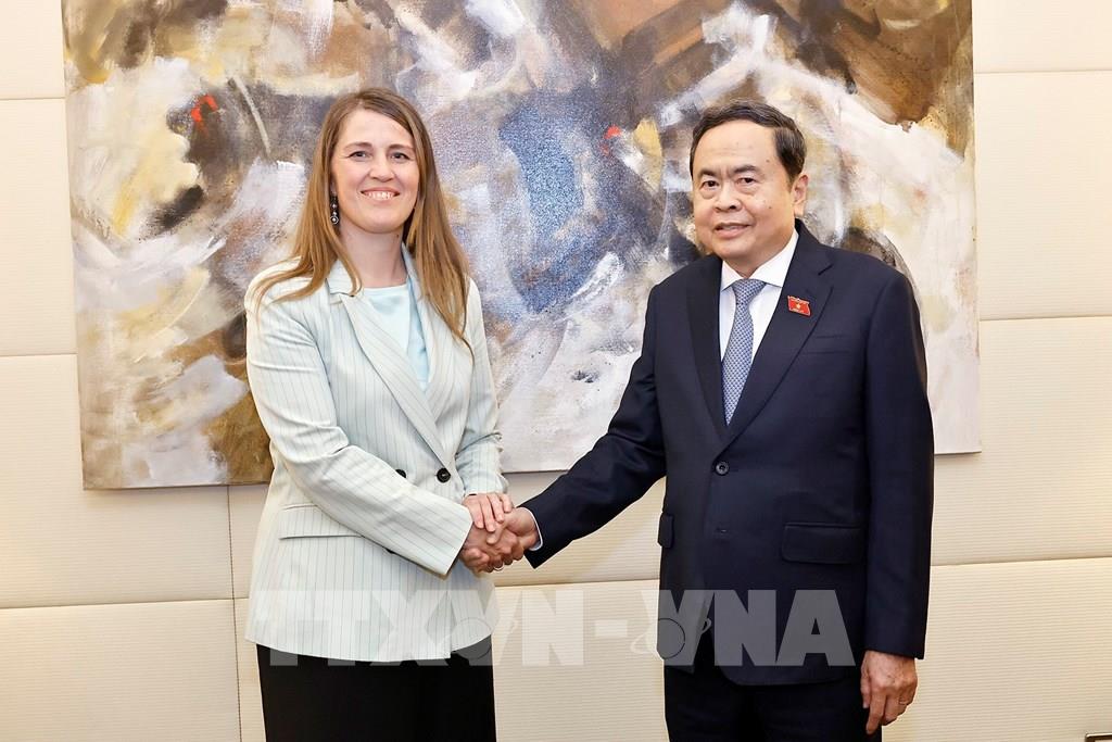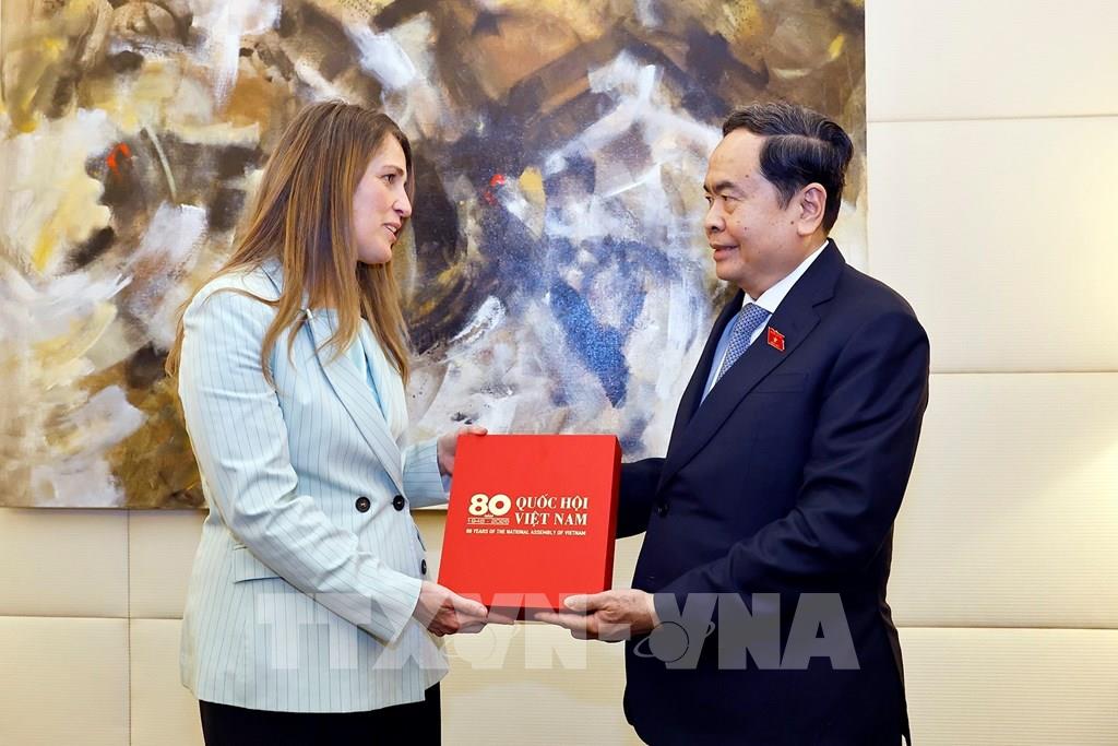 Chủ tịch Quốc hội Trần Thanh Mẫn tiếp Chủ tịch Nhóm Nghị sĩ Hữu nghị Italy – Việt Nam Chiara Gribaudo. Ảnh: Doãn Tấn – TTXVN