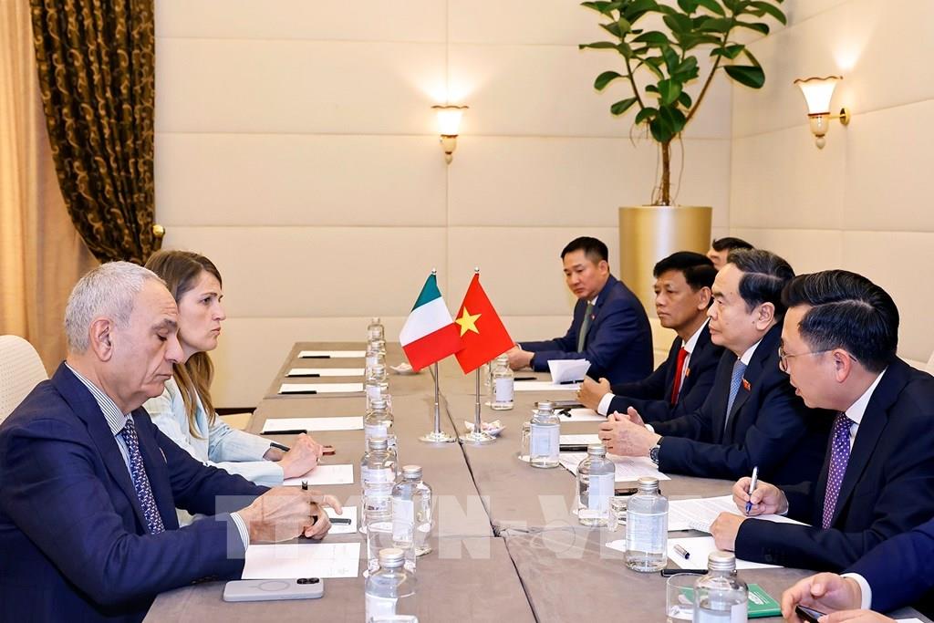 Theo đặc phái viên TTXVN, trong khuôn khổ chuyến thăm chính thức Cộng hòa Italy, sáng 14/4 theo giờ địa phương, tại thủ đô Rome, Chủ tịch Quốc hội Trần Thanh Mẫn tiếp Chủ tịch Nhóm Nghị sỹ hữu nghị Italy - Việt Nam Chiara Gribaudo.