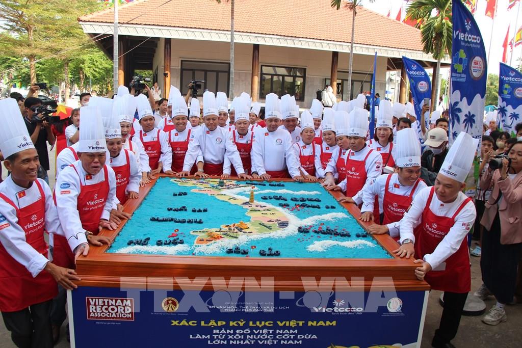 Chùm ảnh xác lập kỷ lục "Bản đồ Việt Nam làm từ xôi nước cốt dừa lớn nhất"