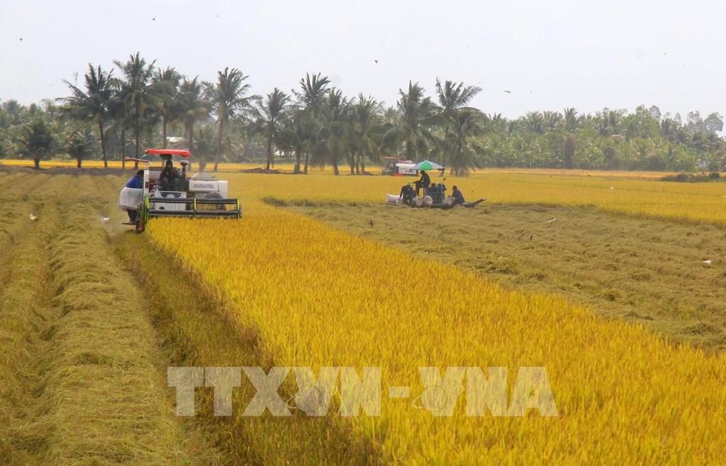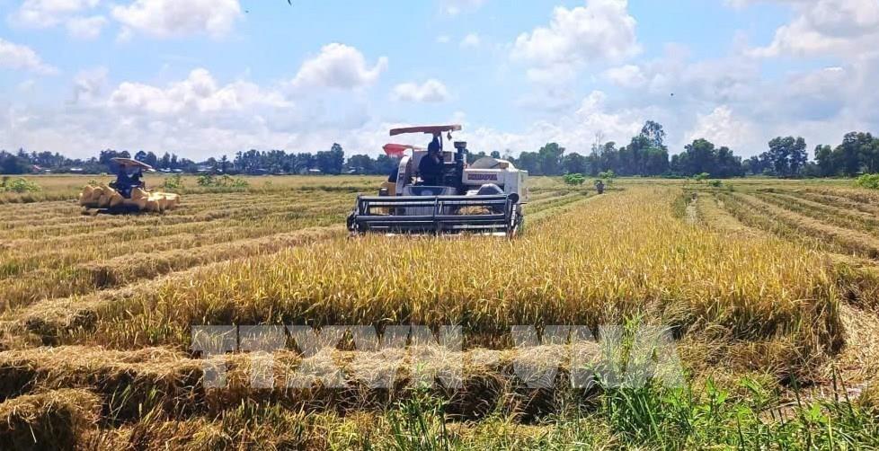 Thu hoạch lúa Đông Xuân 2025 – 2026 tại xã Vĩnh Thuận Đông, thành phố Cần Thơ. Ảnh: Duy Khương – TTXVN