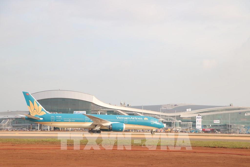 Máy bay thân rộng Boeing 787-9 của Vietnam Airlines thực hiện chuyến bay kỹ thuật từ Tân Sơn Nhất đến Long Thành. Ảnh: Công Phong-TTXVN