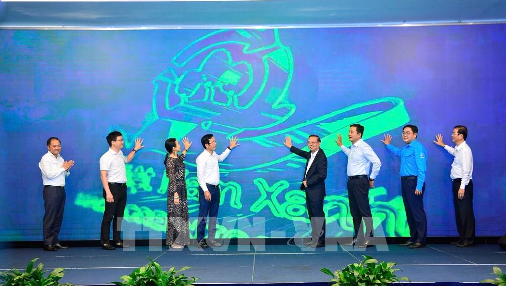 Phó Chủ tịch Ủy ban nhân dân TP. Hồ Chí Minh Bùi Minh Thạnh cùng các đại biểu ấn nút khởi động các Dự án “Việt Nam Xanh 2026”. Ảnh: Thanh Vũ-TTXVN
