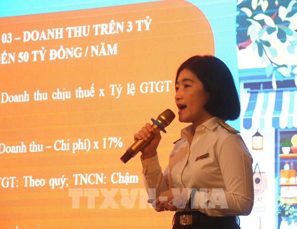 Bà Huỳnh Thị Thanh Thúy, Đại diện Thuế cơ sở 13 (Thuế TP. Hồ Chí Minh) chia sẻ tại chương trình. Ảnh: Hứa Chung-TTXVN