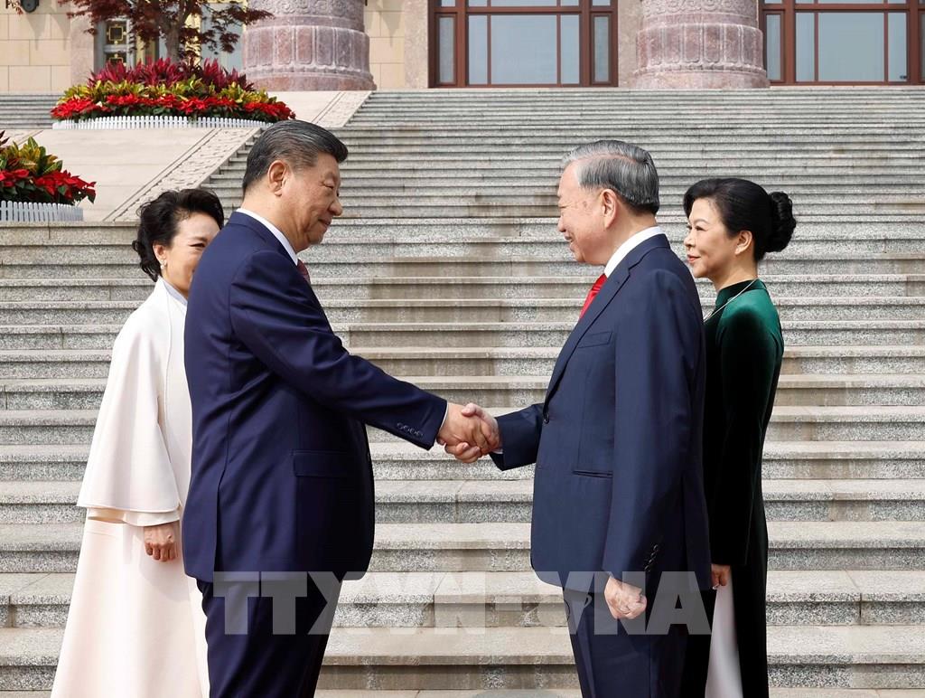 Tổng Bí thư, Chủ tịch nước Trung Quốc Tập Cận Bình và Phu nhân đón Tổng Bí thư, Chủ tịch nước Tô Lâm và Phu nhân. Ảnh: Thống Nhất – TTXVN
