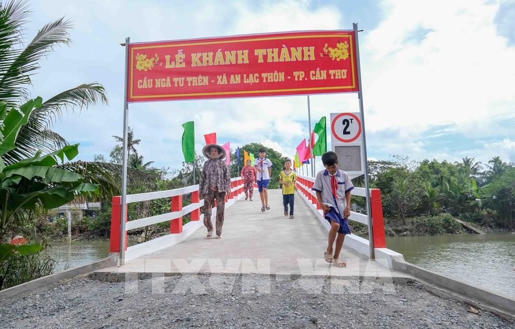Cầu Ngã Tư Trên (cầu VK 284) ấp Hòa Thành, xã An Lạc Thôn, thành phố Cần Thơ khánh thành trước Tết Bính Ngọ, giúp người dân không còn cảnh qua sông phải "lụy phà". Ảnh: Thanh Liêm - TTXVN
