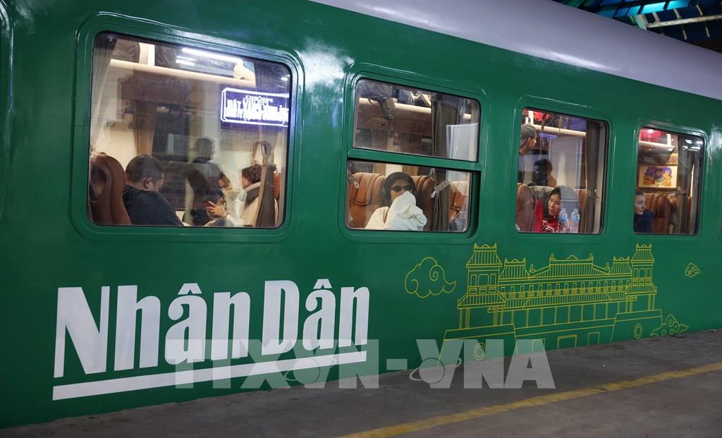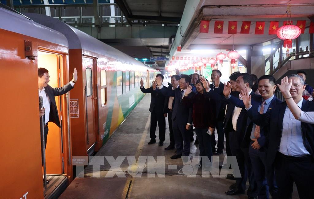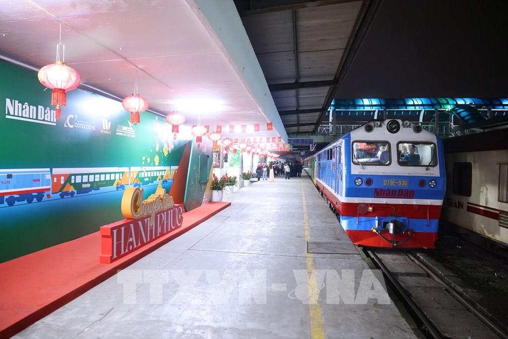 Chuyến tàu Hạnh phúc mang ký hiệu Nhân Dân SE3 rời Ga Hà Nội, chở mùa Xuân về với Nhân dân. Ảnh: Quốc Khánh - TTXVN