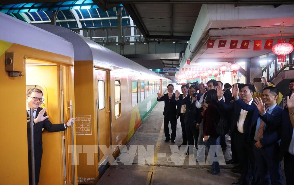 Những vị khách du lịch quốc tế đầu tiên "xông đất Việt Nam" sẽ đón năm mới 2026 trên chuyến tàu Hạnh phúc. Ảnh: Quốc Khánh - TTXVN