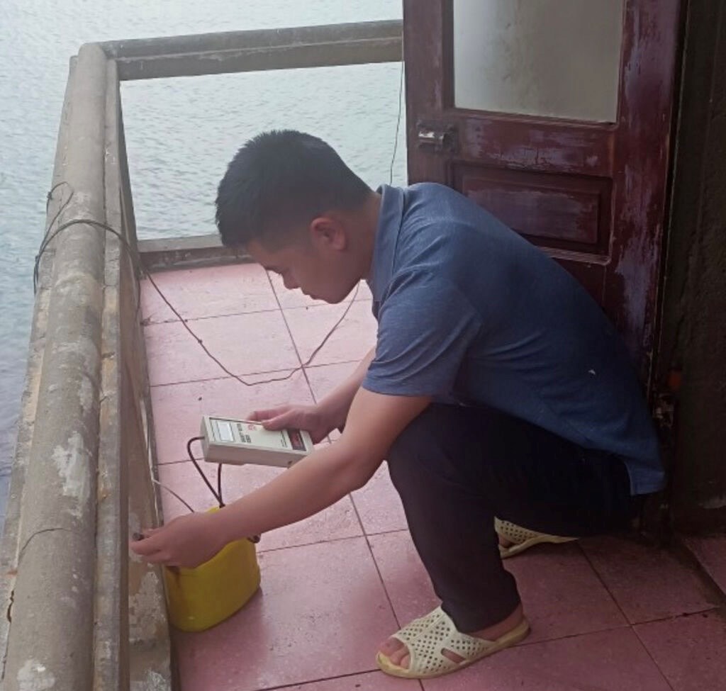 Quan trắc viên Nguyễn cảnh Long đo độ mặn nước biển trên đảo Hòn Ngư. Ảnh: Thắng Trung/Bnews/vnanet.vn