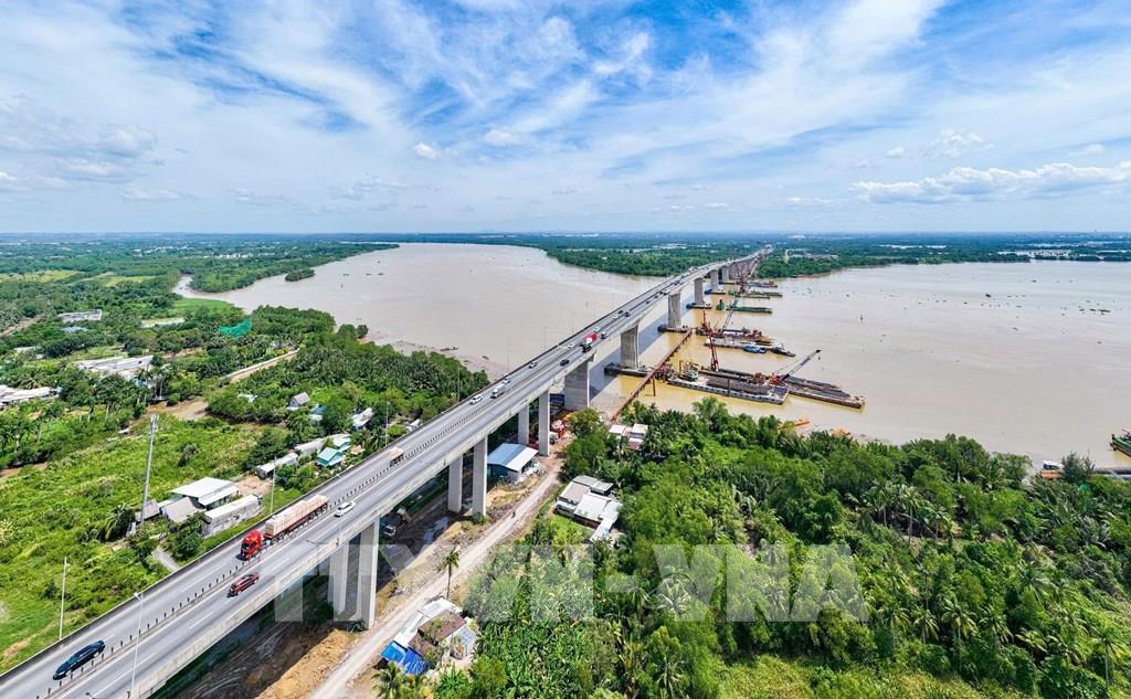 Xây dựng cầu Long Thành mới thuộc dự án mở rộng đoạn cao tốc Thành phố Hồ Chí Minh - Long Thành. Ảnh: Công Phong - TTXVN
