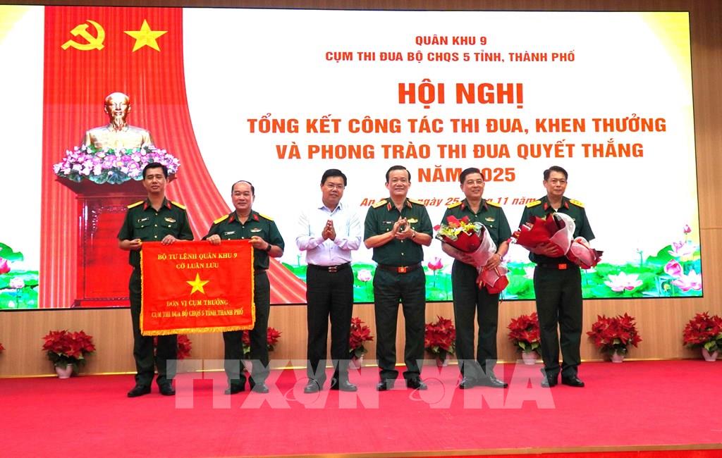 Chiều 25/11, tại phường Rạch Giá (tỉnh An Giang), Cụm thi đua Bộ Chỉ huy Quân sự 5 tỉnh, thành phố gồm: Cần Thơ, Vĩnh Long, Đồng Tháp, Cà Mau, An Giang (Quân khu 9) tổ chức Hội nghị tổng kết công tác thi đua, khen thưởng và phong trào thi đua quyết thắng năm 2025.