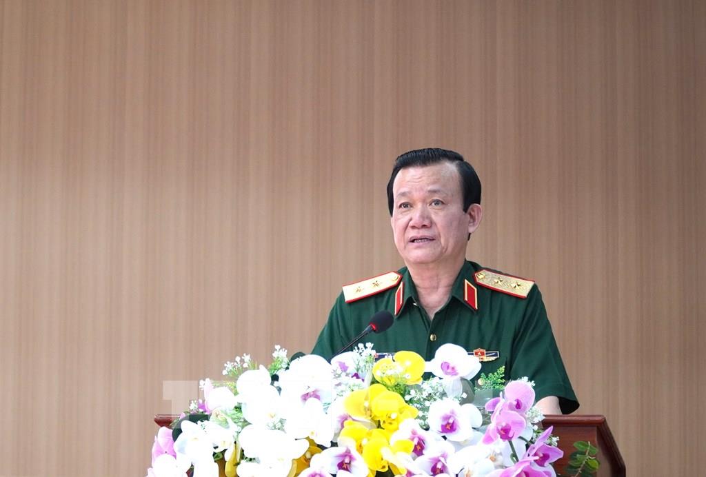 Trung tướng Hồ Văn Thái, Bí thư Đảng ủy, Chính ủy Bộ Tư lệnh Quân khu 9 phát biểu chỉ đạo. Ảnh: Văn Sĩ - TTXVN