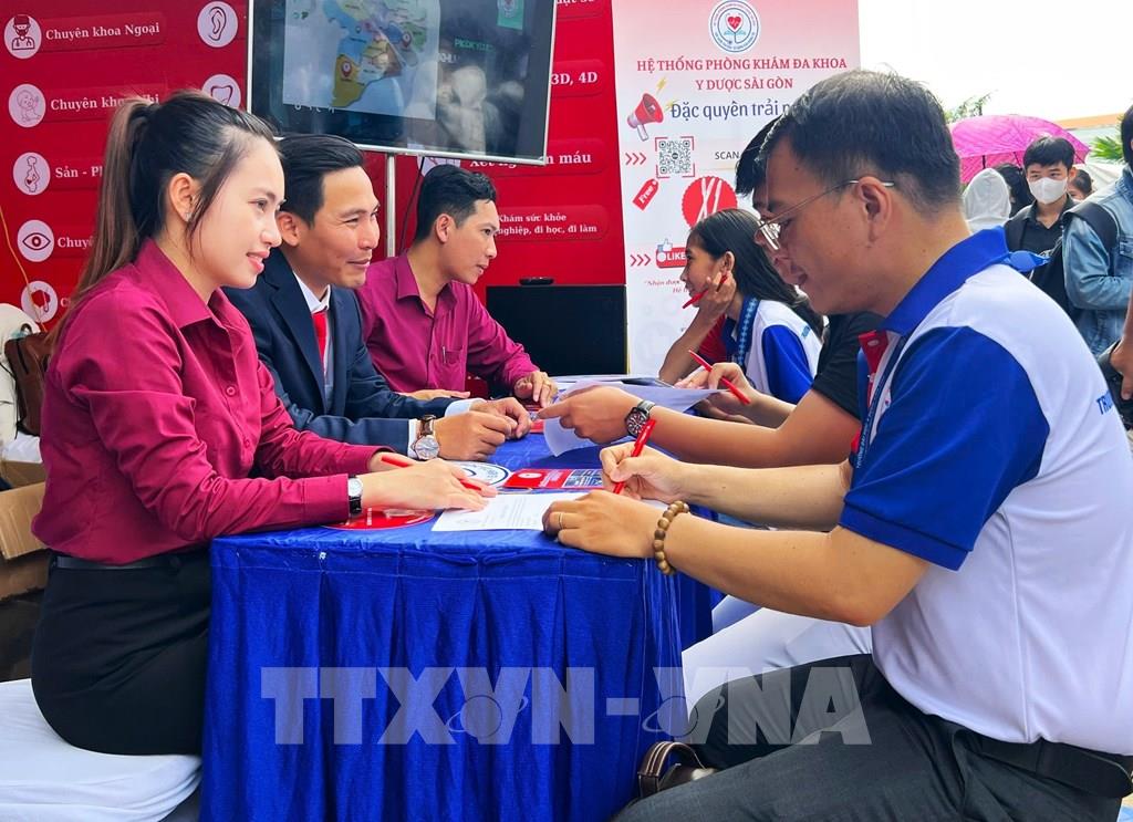 Ứng viên được tìm hiểu thông tin hữu ích từ các nhà tuyển dụng. Ảnh: Ánh Tuyết - TTXVN