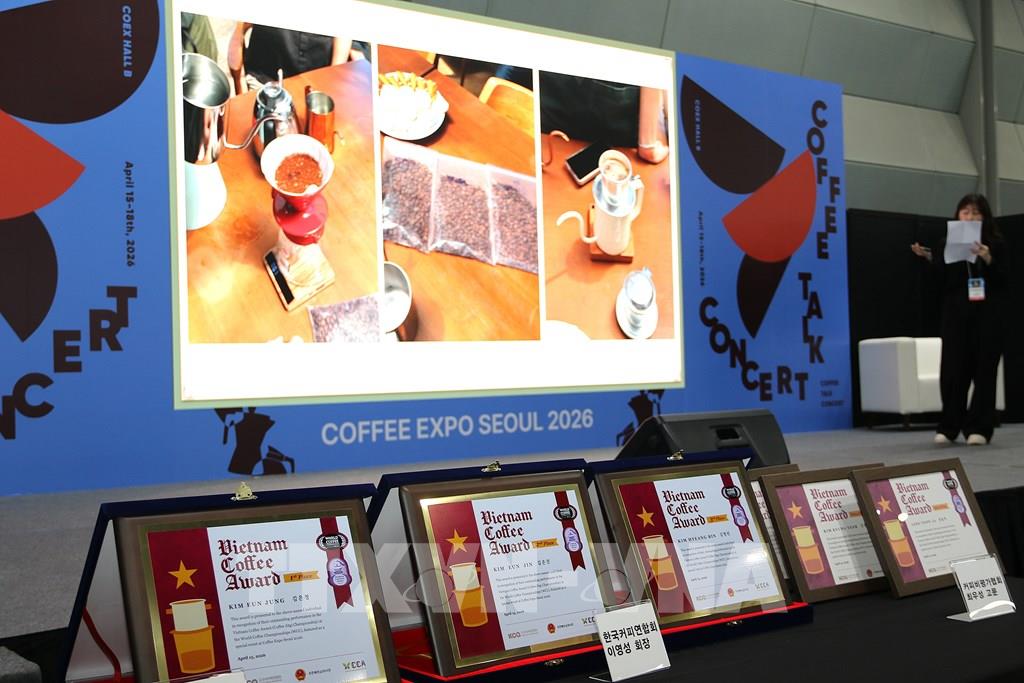 Ngày 15/4, gian hàng cà phê quốc gia Việt Nam đã chính thức khai mạc trong khuôn khổ Triển lãm Cà phê Seoul năm 2026 (Coffee Expo Seoul 2026) – sự kiện diễn ra tại Trung tâm Hội chợ triển lãm COEX ở thủ đô Seoul, Hàn Quốc với sự tham dự của đông đảo đại biểu, doanh nghiệp và đối tác trong ngành cà phê trên thế giới.