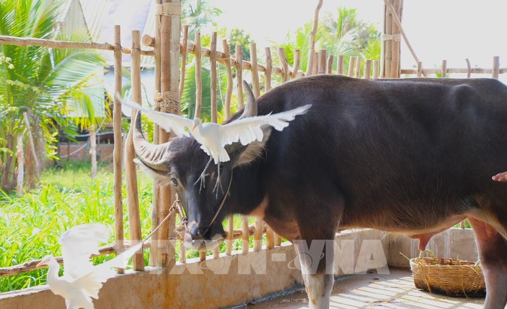 Tại Cồn Sơn, trâu và cò được ví như "đại sứ du lịch" hiền lành, đưa du khách trở về với ký ức tuổi thơ thuần khiết. Ảnh: Nguyễn Hằng - TTXVN