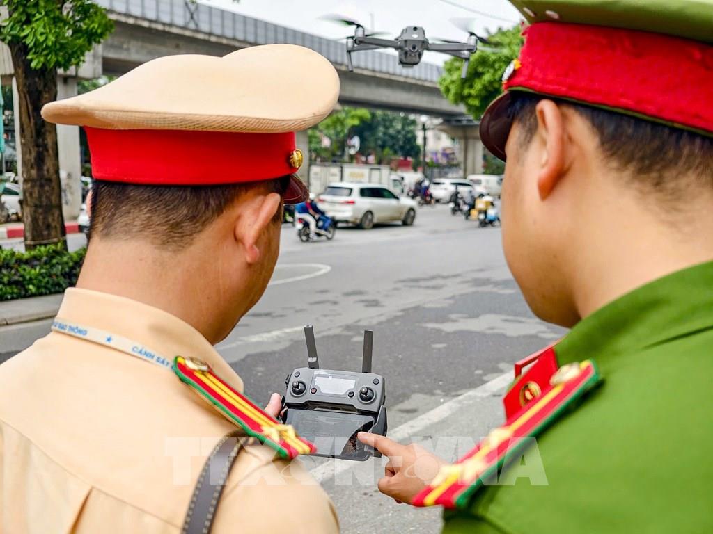 Trong quá trình làm nhiệm vụ, lực lượng chức năng sử dụng các thiết bị như flycam, camera AI... để ghi hình, làm căn cứ xử lý; đảm bảo tính chính xác, khách quan, minh bạch. Ảnh: Trung Nguyên - TTXVN