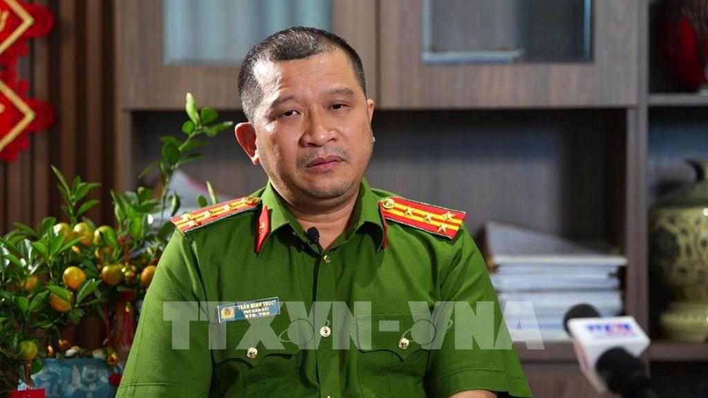 Đại tá Trần Minh Trúc, Phó Giám đốc Công an tỉnh Khánh Hòa trao đổi với phóng viên TTXVN. Ảnh: Đặng Tuấn - TTXVN