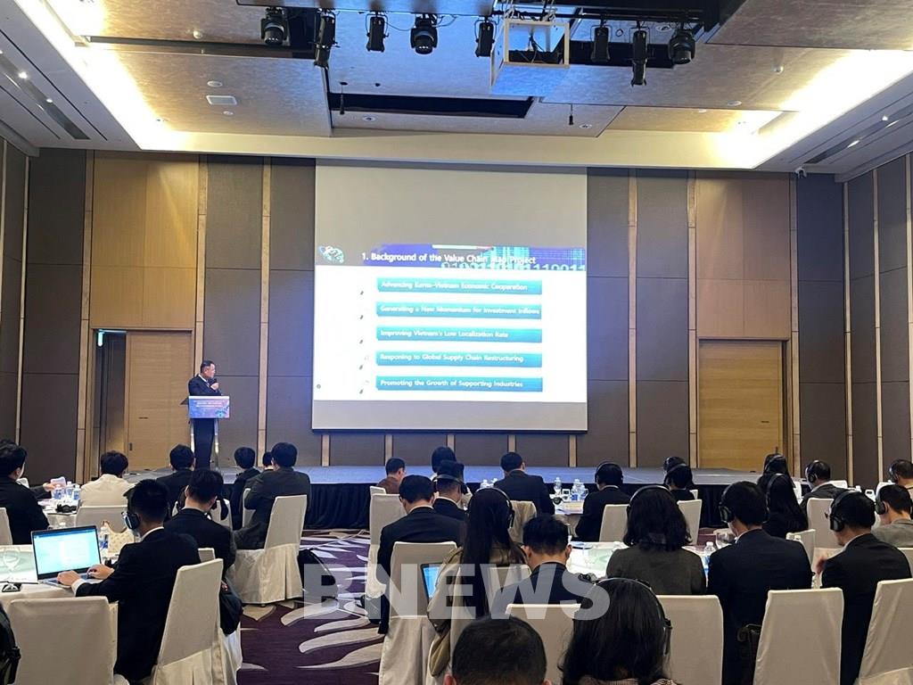Tài liệu được thiết kế trực quan, dễ tiếp cận ngay cả với người không chuyên. Phần bản đồ chuỗi giá trị dài hơn 100 trang, minh họa bằng hình ảnh linh kiện và sản phẩm cụ thể; kết hợp với danh bạ doanh nghiệp chi tiết, tạo thành bộ tài liệu đồ sộ lên tới 913 trang. Đây không chỉ là một cơ sở dữ liệu, mà là “hạ tầng thông tin” phục vụ hoạch định chính sách, xúc tiến đầu tư và phát triển công nghiệp.Ông Cho Sang Jae – Giám đốc Văn phòng KOTRA Hà Nội đánh giá cao sự hợp tác chặt chẽ giữa hai bên, đồng thời cho rằng bản đồ và danh bạ sẽ giúp doanh nghiệp Hàn Quốc cũng như các SME quốc tế dễ dàng nhận diện đối tác tiềm năng tại Việt Nam, từ đó thúc đẩy các quyết định đầu tư mang tính dài hạn.Một điểm nhấn quan trọng được các đại biểu nhấn mạnh là tác động lan tỏa của bản đồ chuỗi giá trị đối với quá trình nội địa hóa và tự chủ công nghệ. Khi các SME nước ngoài mở rộng đầu tư dựa trên dữ liệu chuỗi giá trị minh bạch, khả năng kết nối, hợp tác, chuyển giao công nghệ giữa doanh nghiệp nước ngoài và doanh nghiệp Việt Nam sẽ được thúc đẩy mạnh mẽ hơn, tạo nền tảng để doanh nghiệp nội từng bước tham gia sâu vào các phân khúc có giá trị gia tăng cao.Vì vậy, Bản đồ chuỗi giá trị điện, điện tử Việt Nam sẽ góp phần làm cơ sở giúp các cơ quan liên quan của Việt Nam dễ dàng biết được nên thu hút những doanh nghiệp nào để đạt được năng lực cạnh tranh toàn cầu. Đồng thời, đây là công cụ giúp các doanh nghiệp nước ngoài dễ dàng tìm thấy đối tác tiềm năng tại Việt Nam, từ đó kích hoạt hoạt động đầu tư. Hơn nữa, đây cũng là cơ sở để các cơ quan, doanh nghiệp và hiệp hội tại Việt Nam phân tích cụ thể và hệ thống hơn về việc phải thu hút những doanh nghiệp nào từ nước ngoài để phát triển ngành E&E Việt Nam.Tin liên quan