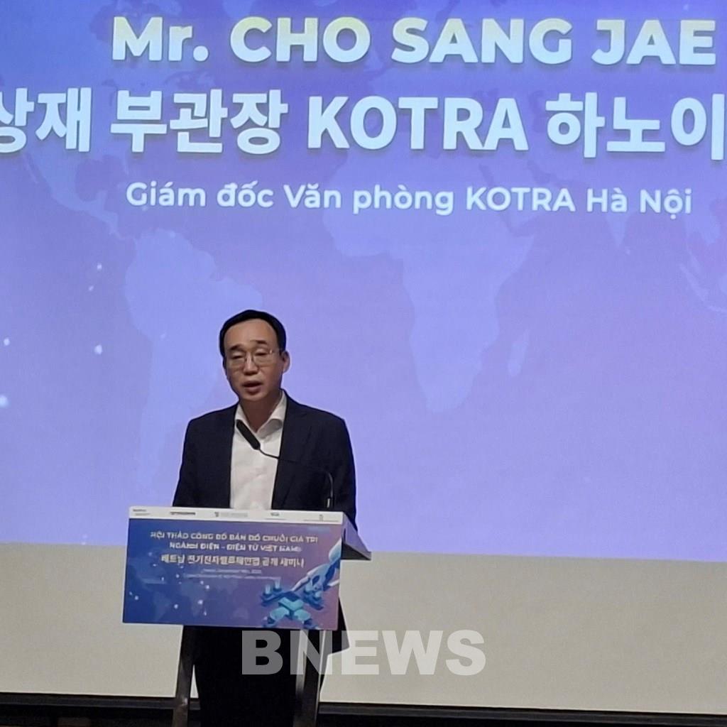 Ông Cho Sang Jae, Giám đốc Văn phòng KOTRA Hà Nội đánh giá cao sự hợp tác của hai bên trong nghiên cứu Bản đồ Chuỗi giá trị điện, điện tử Việt Nam. Ảnh: Uyên Hương/Bnews/vnanet.vn