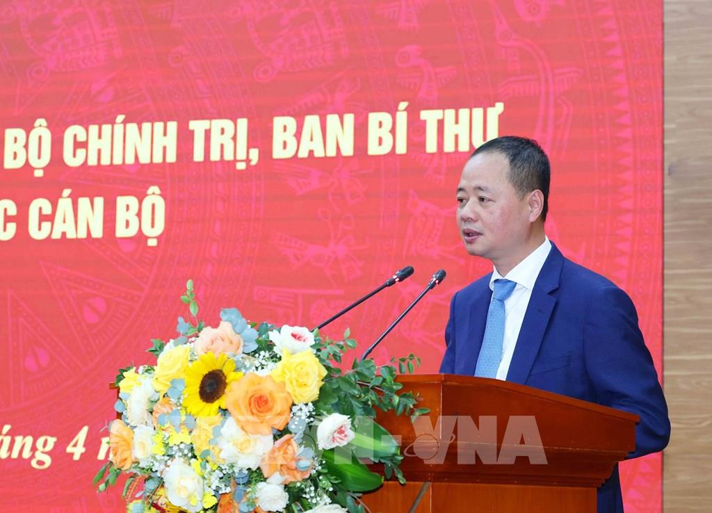 Đồng chí Trần Hồng Thái, Ủy viên Trung ương Đảng, Chủ tịch Viện Hàn lâm Khoa học và Công nghệ Việt Nam, Phó Trưởng Ban Chính sách, chiến lược Trung ương phát biểu nhận nhiệm vụ. Ảnh: Phương Hoa - TTXVN