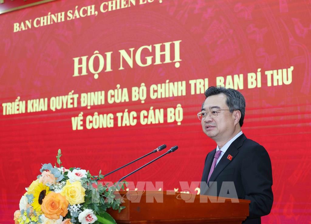 Phát biểu nhận nhiệm vụ, các tân Phó Trưởng Ban Chính sách, chiến lược Trung ương khẳng định sẽ tiếp thu, lĩnh hội đầy đủ các ý kiến chỉ đạo, giao nhiệm vụ của đồng chí Trưởng Ban Chính sách, chiến lược Trung ương để bổ sung, cụ thể hóa các chương trình hành động, trong các kế hoạch công tác của cơ quan; tiếp tục tận tâm, tận lực, rèn luyện, gương mẫu, trách nhiệm, phát huy năng lực, kinh nghiệm thực tiễn công tác, bắt tay ngay vào công việc.