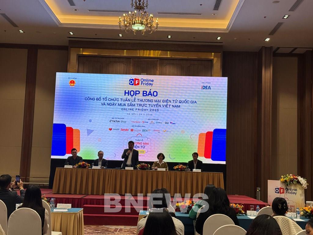 Công bố thời gian diễn ra Tuần lễ Thương mại điện tử quốc gia và Ngày mua sắm trực tuyến Việt Nam - Online Friday 2025. Ảnh: Uyên Hương/BNEWS/TTXVN