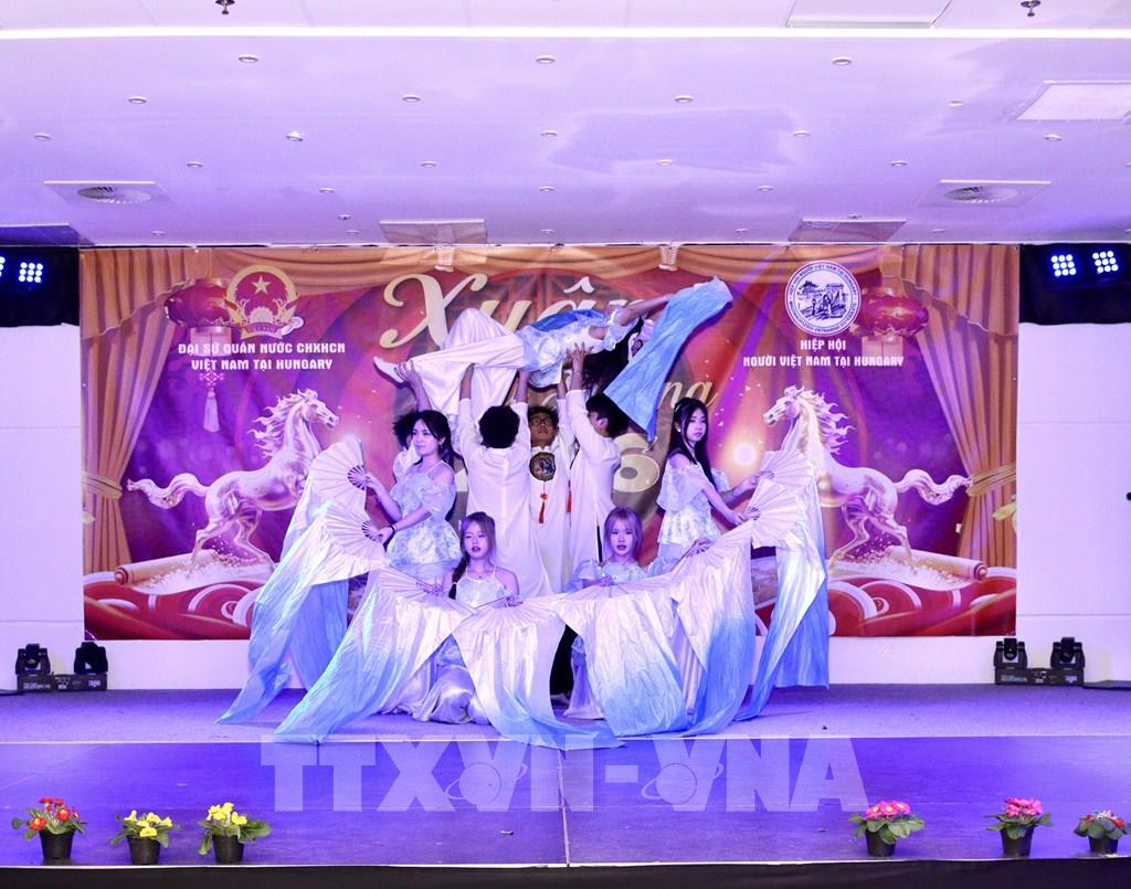 Một tiết mục văn nghệ do con em người Việt tại Hungary biểu diễn tại chương trình Tết cộng đồng Xuân Bính Ngọ 2026. Ảnh: TTXVN phát