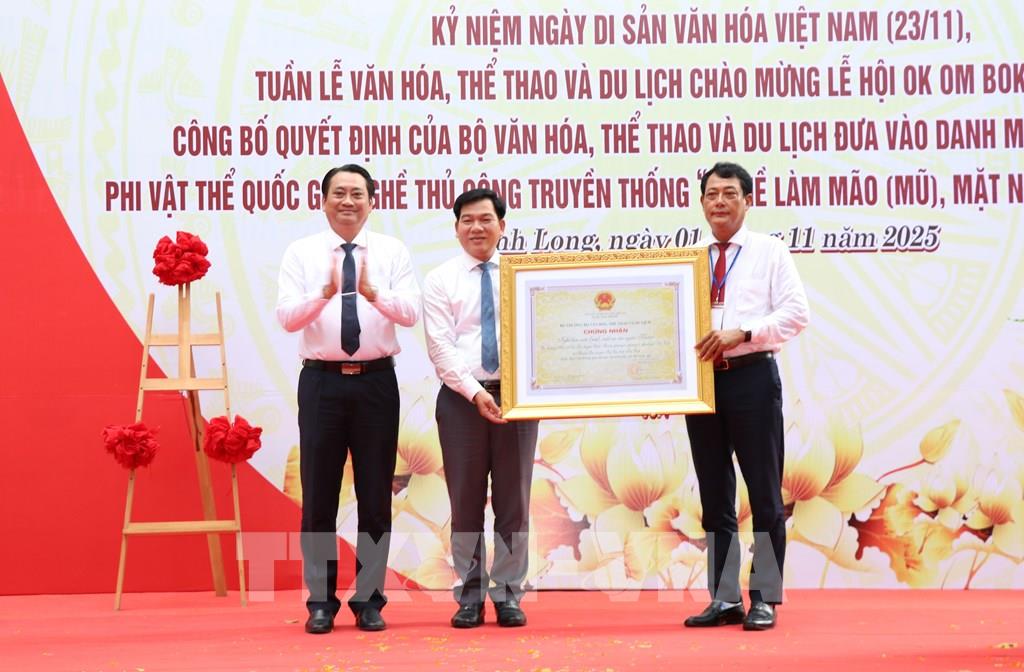 Ngày 1/11, tại lễ kỷ niệm Ngày Di sản Văn hóa Việt Nam (23/11) gắn với Tuần lễ Văn hóa, Thể thao và Du lịch chào mừng Lễ hội Ok Om Bok năm 2025 diễn ra tại phường Nguyệt Hóa, tỉnh Vĩnh Long, Sở Văn hóa, Thể thao và Du lịch tỉnh công bố quyết định của Bộ Văn hóa, Thể thao và Du lịch về việc đưa nghề thủ công mỹ nghệ “Nghề làm mão (mũ), mặt nạ của đồng bào Khmer” vào Danh mục di sản văn hóa phi vật thể quốc gia.
