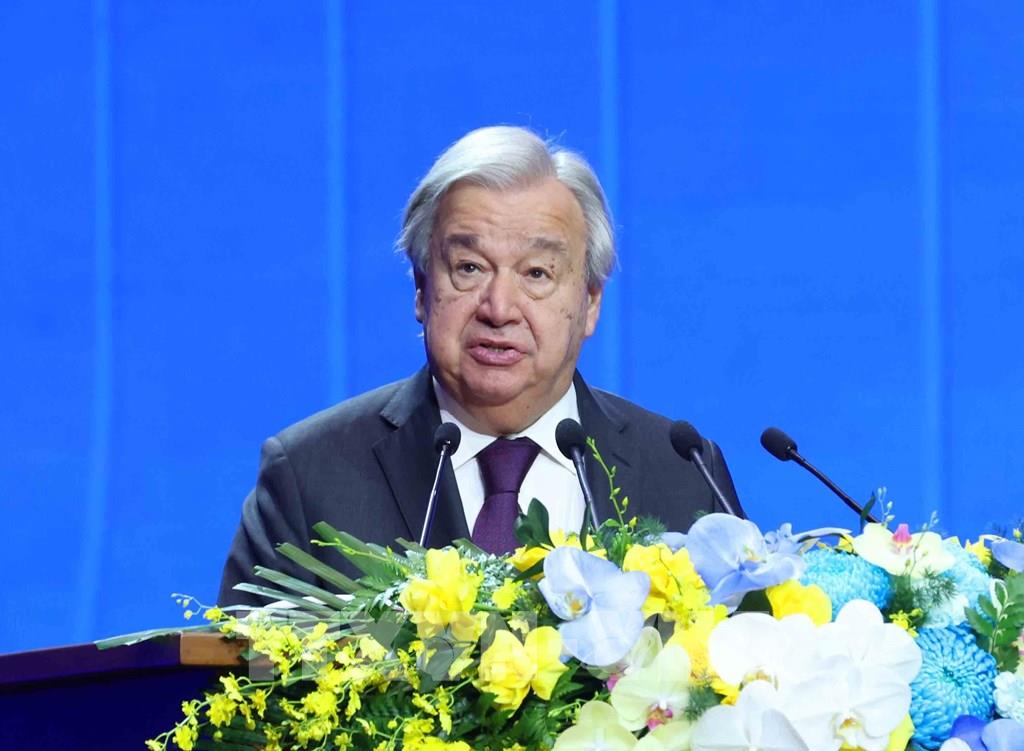 Tổng Thư ký Liên hợp quốc António Guterres phát biểu tại Phiên khai mạc cấp cao Lễ mở ký Công ước Hà Nội. Ảnh: Phương Hoa - TTXVN