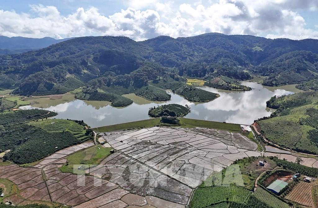 Công trình thủy lợi hồ Cay An tại xã Tà Năng dung tích chứa khoảng 1,7 triệu m3, cung cấp nước tưới cho 250 ha đất sản xuất trong khu vực. Ảnh: Nguyễn Dũng – TTXVN