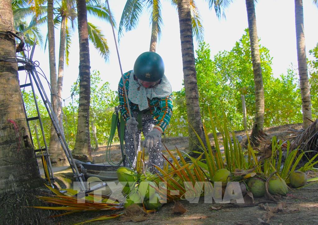 Vườn dừa Phước Lộc xanh mát phục vụ khách du lịch quanh năm. Ảnh: Nguyễn Hằng - TTXVN