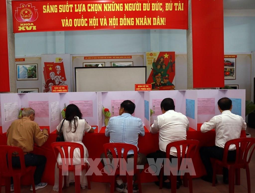 Cử tri tỉnh Khánh Hòa tự tay bầu chọn đại biểu Quốc hội khóa XVI và HĐND các cấp. Ảnh: Xuân Triệu - TTXVN