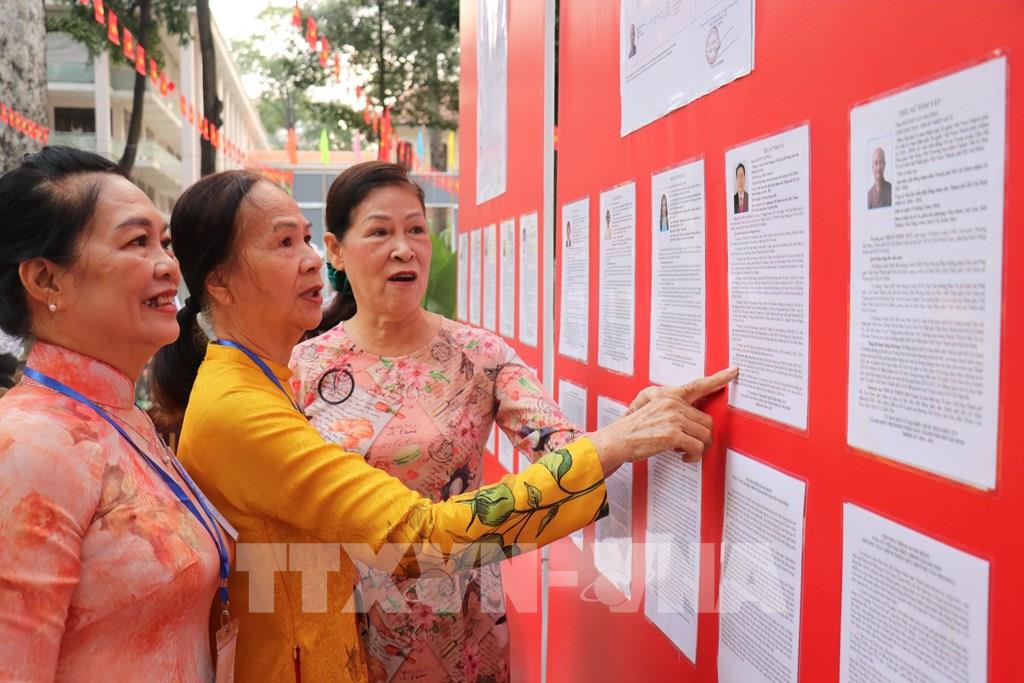 Người dân xem danh sách các ứng cử viên tại khu vực bỏ phiếu số 1, phường Xuân Hòa, TP. Hồ Chí Minh. Ảnh: Thanh Vũ – TTXVN
