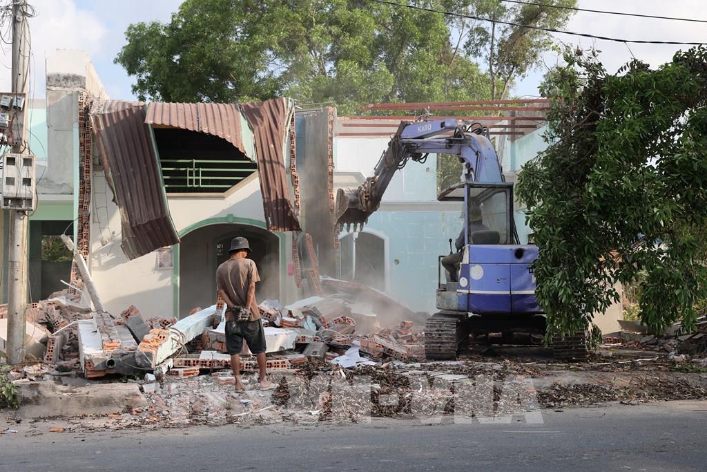 Một công trình bị cưỡng chế sau khi nhiều lần được cơ quan chức năng của phường vận động nhưng không bàn giao mặt bằng. Ảnh: Hoàng Nhị - TTXVN.