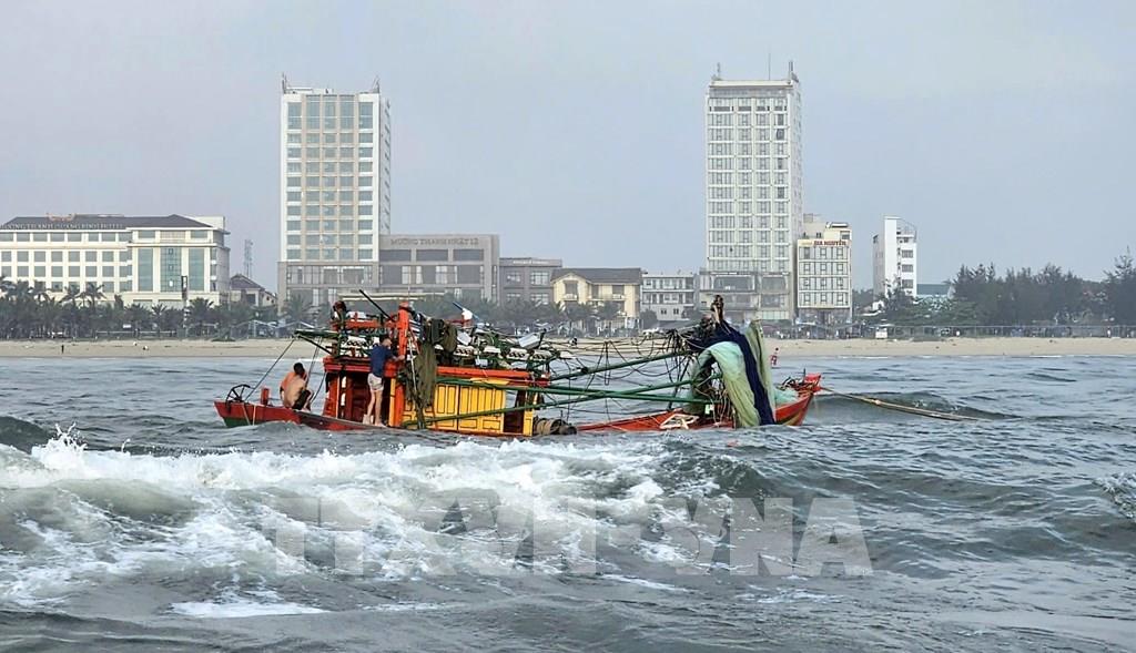 Cứu nạn thành công 5 ngư dân trên tàu cá bị lật tại cửa biển Nhật Lệ