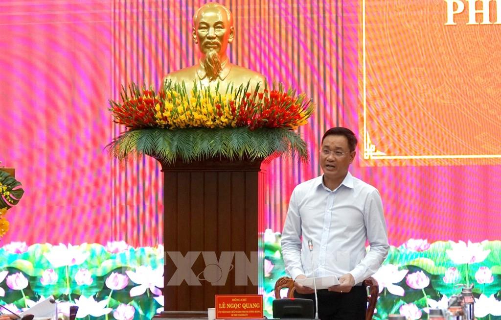 Ông Lê Ngọc Quang, Ủy viên Trung ương Đảng, Bí thư Thành ủy, Trưởng Ban Chỉ đạo phòng, chống tham nhũng, lãng phí, tiêu cực thành phố Đà Nẵng phát biểu tại hội nghị. Ảnh: Quốc Dũng - TTXVN
