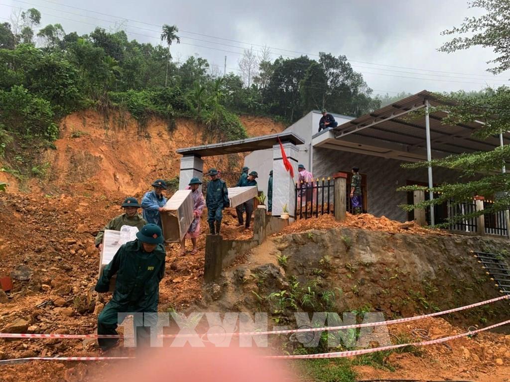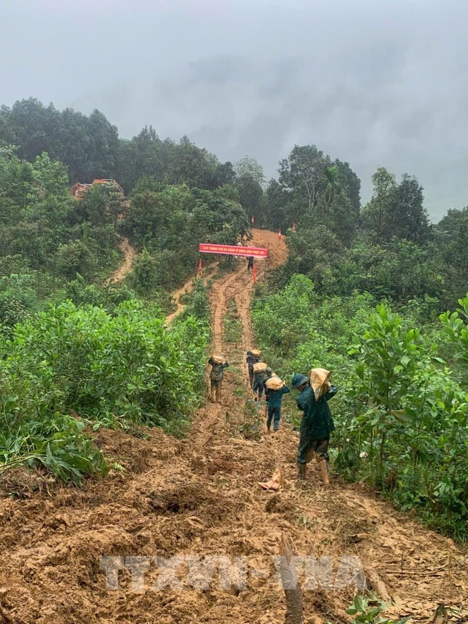 Dọn dẹp mặt bằng sau khi nhà ở cũ bị sạt lở núi vùi lấp để xây lại nhà ở cho đồng bào ở xã Trà Leng, thành phố Đà Nẵng. Ảnh: Đoàn Hữu Trung - TTXVN