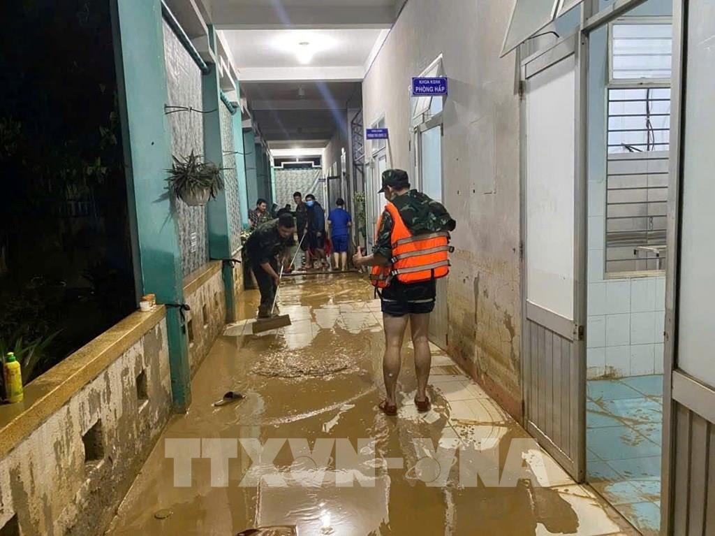 Bộ đội Đà Nẵng giúp người dân dọn dẹp vệ sinh sau khi lũ rút. Ảnh: Khoa Chương - TTXVN