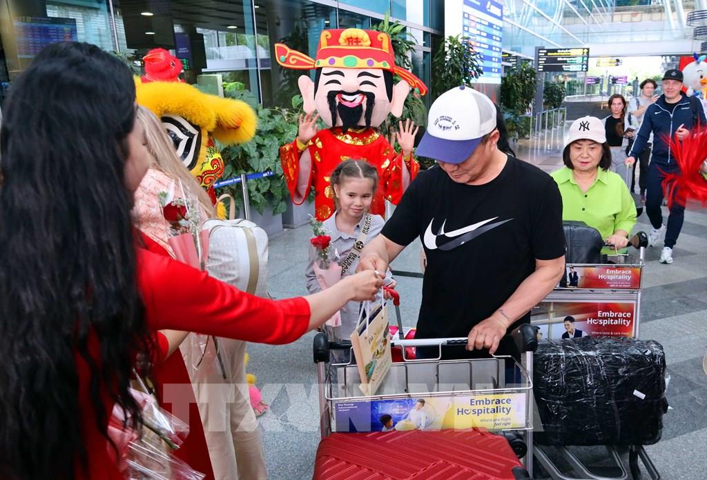 Những hành khách đầu tiên đến Đà Nẵng từ Vladivostok. Ảnh: Trần Lê Lâm - TTXVN
