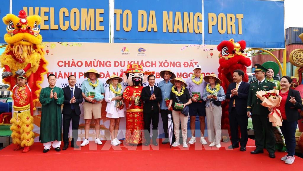 Tàu du lịch biển Seabourn Encore cập cảng Tiên Sa đưa du khách đến tham quan Đà Nẵng trong những ngày đầu Xuân mới Bính Ngọ 2026. Ảnh: Trần Lê Lâm - TTXVN