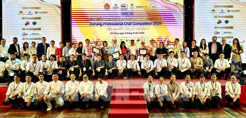 Ngày 11/11/2025, tại Cung Hội nghị Quốc tế ICP - Furama Resort Đà Nẵng, Liên đoàn Lao động thành phố Đà Nẵng, Hội Khách sạn Đà Nẵng phối hợp với Hiệp hội Xuất khẩu Trứng & Gia cầm Hoa Kỳ, Furama Resort Đà Nẵng và các đơn vị liên quan tổ chức khai mạc Cuộc thi Đầu bếp chuyên nghiệp Đà Nẵng 2025 lần thứ 5. Ảnh: Trần Lê Lâm - TTXVN