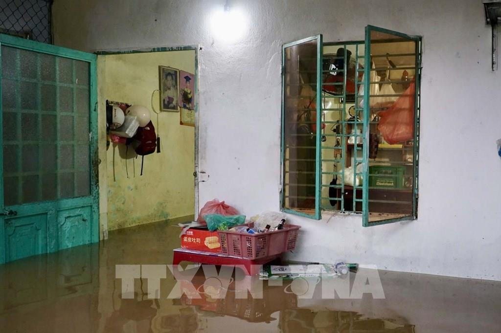 Mưa lớn nước tràn vào nhà dân tại khu vực đường Mẹ Suốt. Ảnh: Trần Lê Lâm - TTXVN