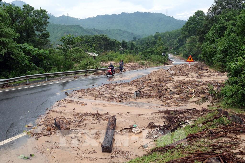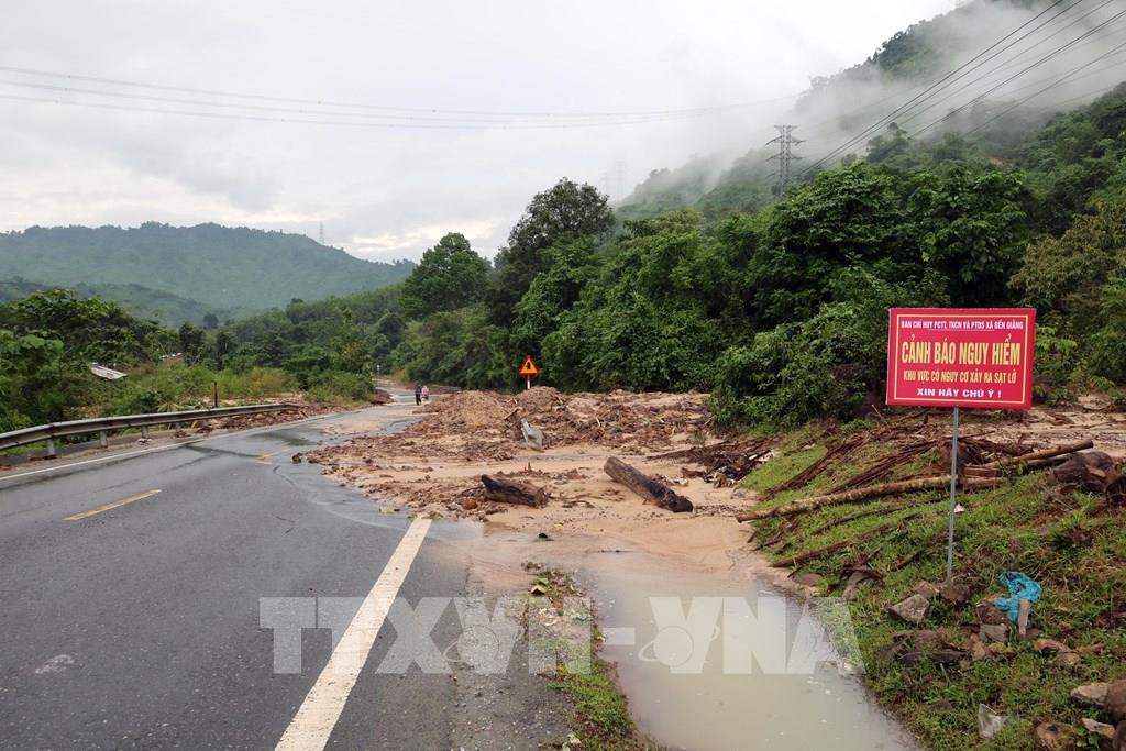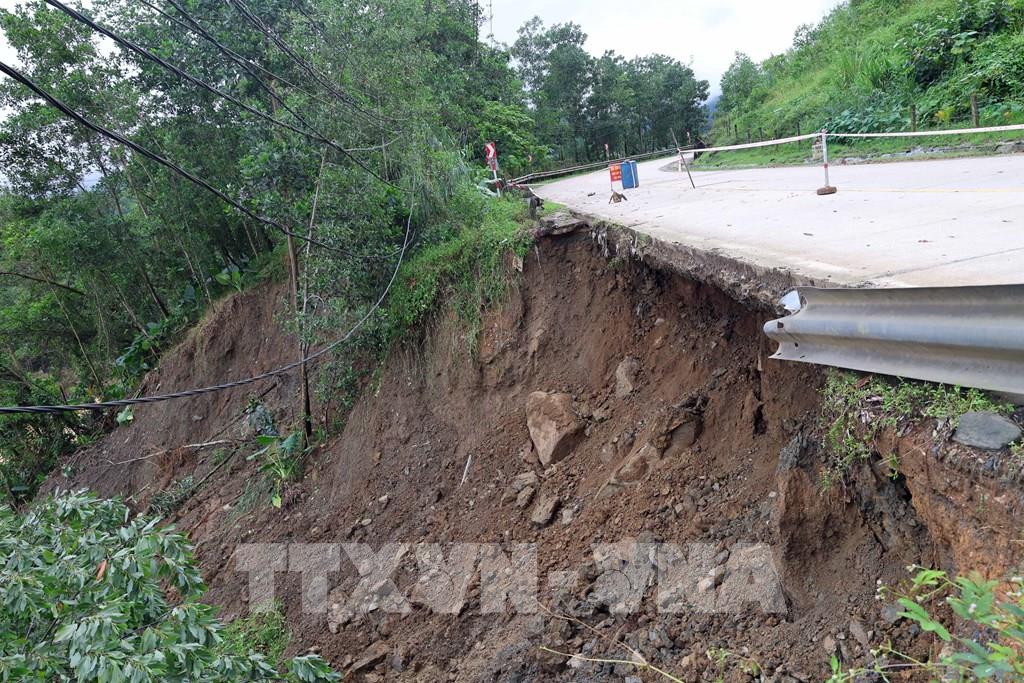 Sạt lở phía taluy âm trên tuyến đường Hồ Chí Minh qua xã Khâm Đức, thành phố Đà Nẵng. Ảnh: Đỗ Trưởng – TTXVN