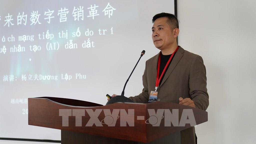 Đại diện doanh nghiệp đến từ Trung Quốc chia sẻ kinh nghiệm tại buổi giao lưu. Ảnh: Khoa Chương - TTXVN