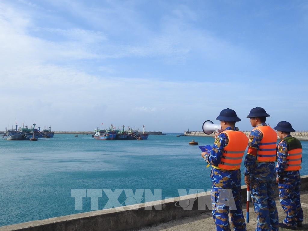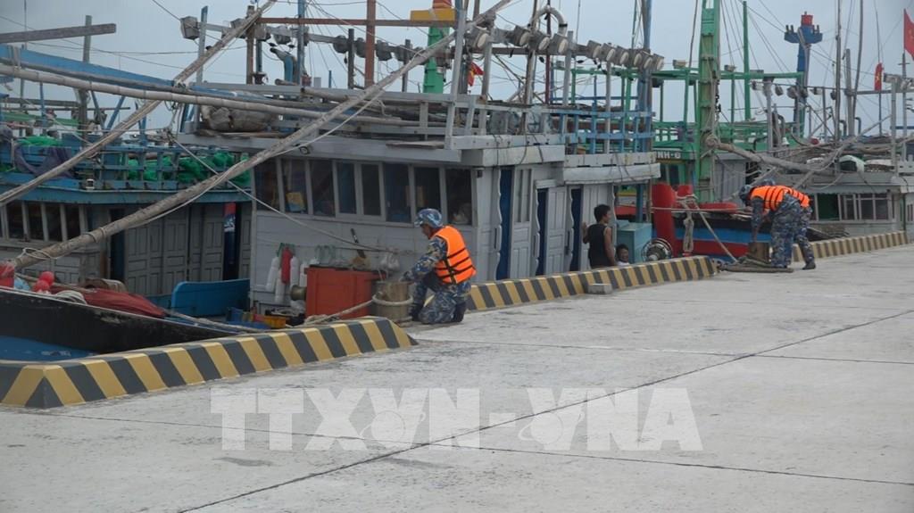 Lực lượng hải quân kêu gọi tàu thuyền vào tránh trú bão số 15. Ảnh: TTXVN phát