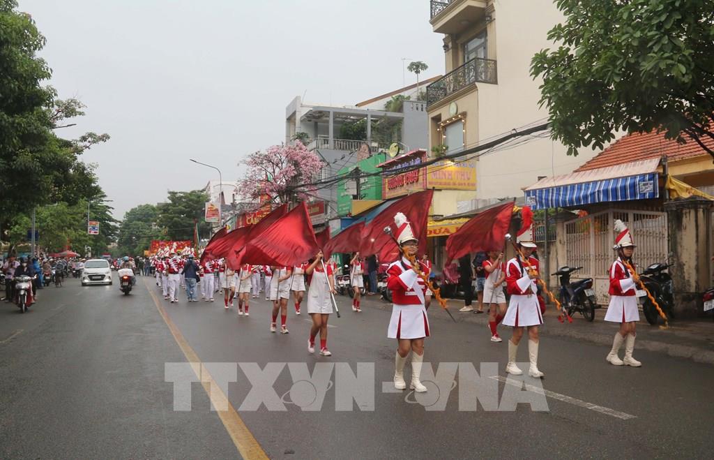Hóa trang thành các nhân vật lịch sử tuần du trên các tuyến phố ở phường Trấn Biên, tỉnh Đồng Nai. Ảnh: Công Phong - TTXVN