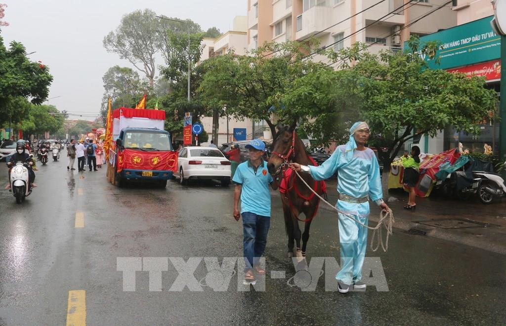 Đoàn nghinh thần di chuyển trên một tuyến phố ở phường Trấn Biên, tỉnh Đồng Nai. Ảnh: Công Phong - TTXVN