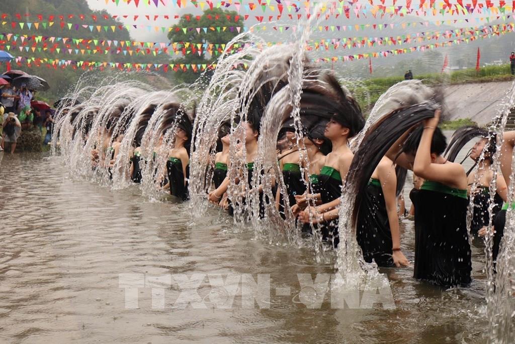 Trình diễn “Áp hô Pang” (nghi thức gội đầu) của người Thái ở xã Khổng Lào, tỉnh Lai Châu. Ảnh: Việt Dũng - TTXVN